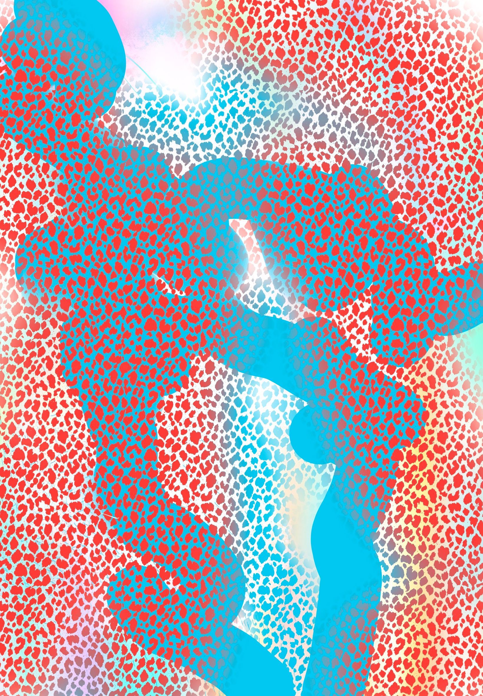 Prolific and spiritually charged, Miller’s practice has mostly explored the abstract where his mark-making is decisive and deliberate. Recently he has been using the photographic collage capabilities of Procreate to apply his colour sensitivities to images of himself with his friends, who he cherishes deeply.